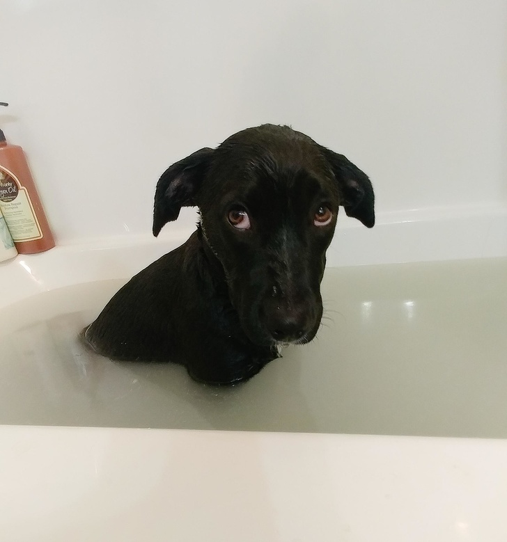 Рідко коли собака добровільно погоджується на гігієнічні процедури. Навіть ті породи, які не роздумуючи стрибають в озеро, занурюються з головою у калюжу або бігають за автоматичними розбризкувачами, не сприймають ванну як щось приємне. Собакам не подобається шум проточної води і слизька поверхня. Тому, щоб звести до мінімуму стрес, перед водними процедурами постеліть гумовий килимок, дайте ласощі і хваліть собаку за терпіння.