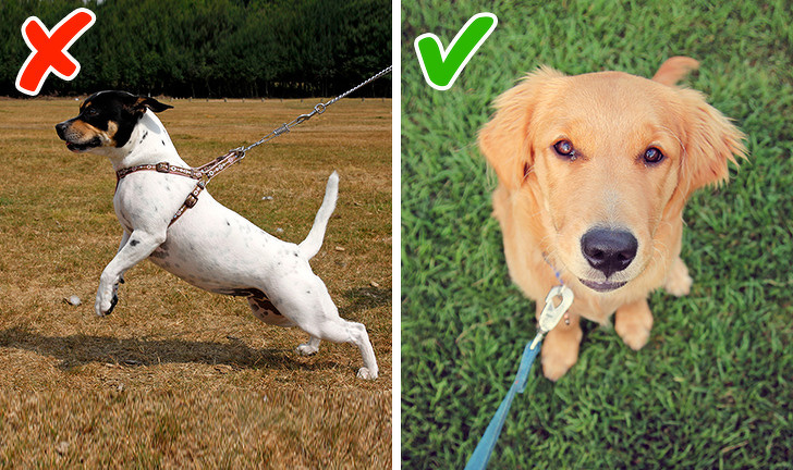 - Ви тягнете повідець. Кінологи не втомлюються повторювати, що повідець — це засіб спілкування між твариною і його господарем. Не можна дозволяти собаці тягнути вас, і якщо вихованець не слухається, то зупиніться. Як тільки поводок ослабне, а ваша собака подивиться на вас — продовжуйте прогулянку. Не забудьте захопити з собою ласощі, щоб заохочувати її за хорошу поведінку.