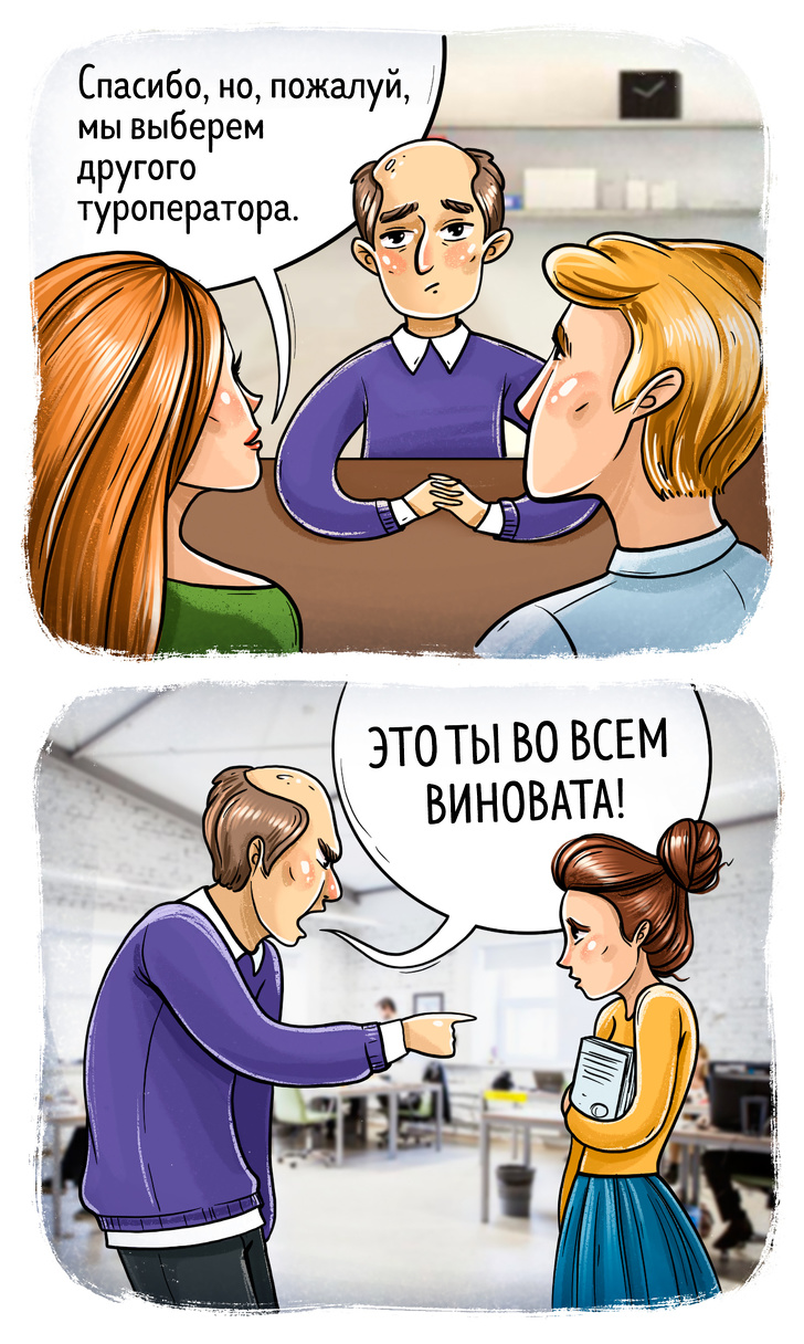 Звичайно, і у психопатів в житті трапляються промахи, щось не виходить. Але ми пам'ятаємо, що такі люди не відчувають докорів сумління і щиро вірять, що просто не можуть помилитися. Тому завжди і у всьому будуть винні оточуючі — колеги, родина, сусіди.