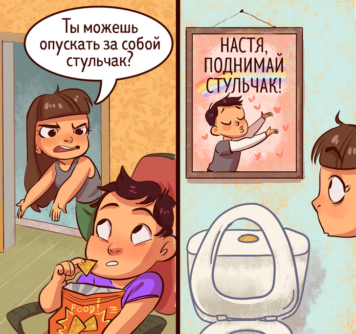 Заходиш у ванну кімнату, а там — не опущений стульчак. Ну як тут не сказиться?! І все: крик, скандал і світ котиться в прірву. У той час як чоловік взагалі не розуміє, в чому проблема і чому так важко просто взяти і опустити стульчак унітазу. Він же його постійно піднімає і не скаржиться.