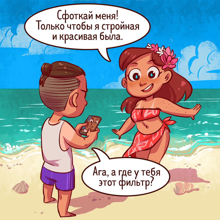 Жінки мріють про #instaмуже, як у подружки, щоб теж на фотці виходити красивою і було багато лайків, але, на жаль, найчастіше партнер робить кадри, на яких ви як раз позіхав / моргали / говорили. Чоловіки у свою чергу мріє про дівчину, яка буде милуватися пам'ятками, а не постійно просити зробити 100500 фоток.