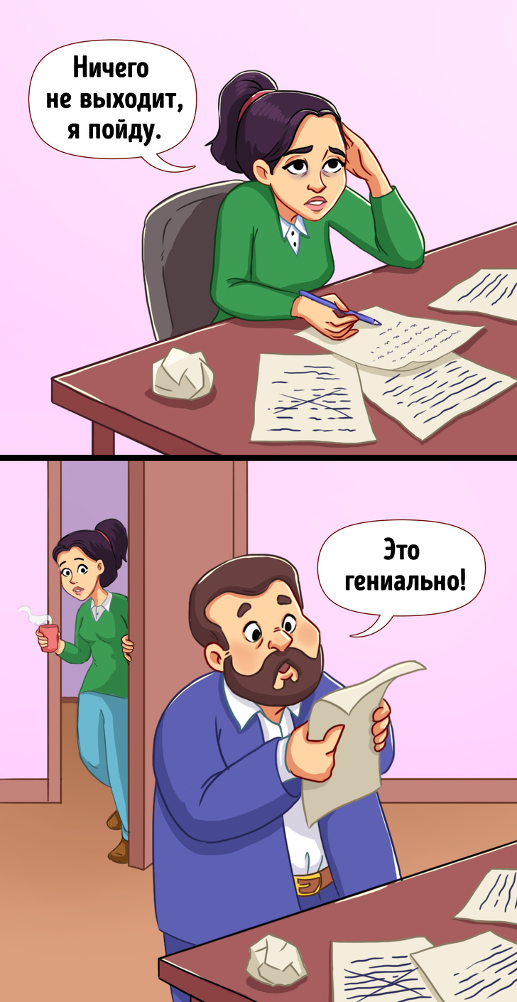 А навіщо тоді і намагатися? Навіть якщо коли-то працівник стикався з подібним завданням, навіть якщо він тоді пробував його вирішити сотні раз, це не привід скласти руки. Задумайтеся, що варто змінити, щоб домогтися позитивного результату. Начальство цікавить насамперед результат, так само як і того, хто хоче зробити хорошу кар'єру. А тому початковий песимізм варто забути. До того ж всі геніальні рішення не приходили в першу секунду. Томас Едісон виконав 10 000 невдалих експериментів, для того щоб удосконалити електричну лампочку розжарювання. Так чому б і нам не спробувати щось вирішити ще раз?