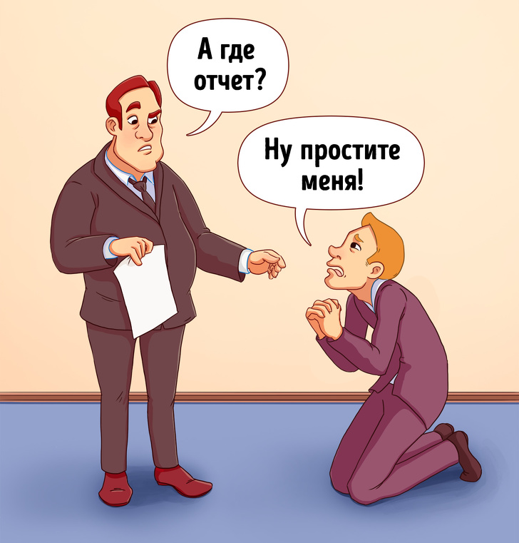 Ця фраза дуже відверта та емоційна для робочої обстановки. Якщо немає плану влаштувати офісну драму, такі слова краще залишити для особистого життя. А на роботі доречніше стримано визнати свою провину і пообіцяти виправити ситуацію. Посипати голову попелом, м'яко кажучи, непродуктивно.