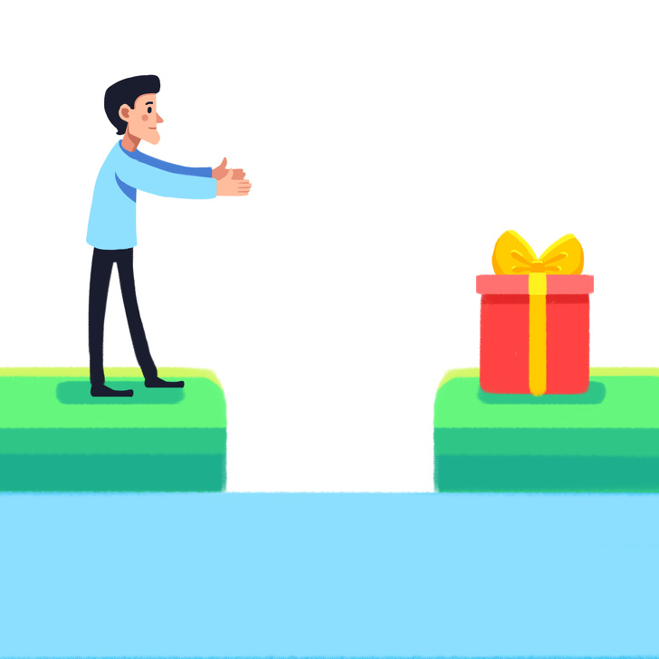 4. Чи зможе людина з малюнка перебратися на інший берег до подарунка?