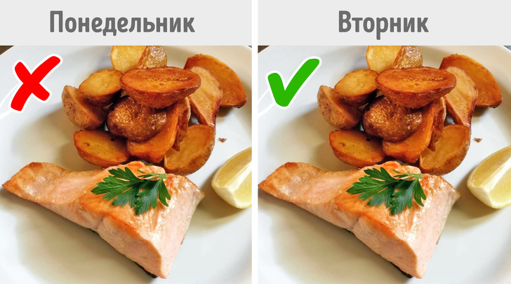 Більшість ресторанів замовляють свіжу рибу по вівторках та четвергах. Невипадково, що іноді в ресторанах по понеділках риба є стравою дня, адже її потрібно розпродати до закінчення терміну придатності. За цією ж логікою ресторани влаштовують різноманітні акції та вигідні позиції дня. Часто ці страви приготовані з продуктів, що залишилися, термін придатності яких закінчується найближчим часом.