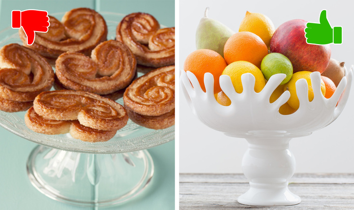 Дослідження встановило, що, якщо люди зберігають висококалорійні продукти на увазі, вони з більшою ймовірністю будуть важити більше, ніж ті, хто приховує нездорову їжу від очей, а замість неї тримає фрукти. Справа в тому, що вид смачної (але шкідливої) їжі збільшує голод і спокуса, що й призводить до того, що ви їсте. Тому розміщуйте на видному місці тільки здорові і корисні продукти.