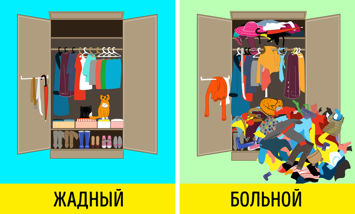 Жадноватым людям важко розлучатися з речами, нехай ті і не представляють особливої цінності. В результаті такої «ощадливості» балкон квартири виявляється захаращений речами, які коли-небудь знадобляться». Але це не точно.