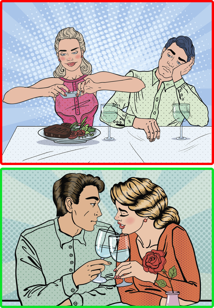 Погані манери за обідом можуть позбавити шансу на друге побачення. Самої огидною звичкою жителі Англії одноголосно визнали плямкання. У чорний список також потрапили дегустація страви з чужої тарілки і базікання по телефону. Але і це ще не все: якщо ви в якості місця для першого побачення вибираєте закусочну швидкого харчування або замовляєте страви з часником, то місія зі зваблення буде провалена.