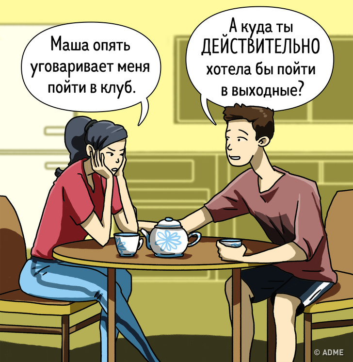 2) Відмовитися від тиску на близьку — якщо він не хоче кудись йти, не треба наполягати.