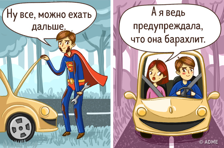 Жінок не так хвилює лавровий вінок на голові (принаймні, зовні це проявляється не настільки явно). Їй важливо, щоб все було спокійно, розмірено, гармонійно. Тому жінки готові мчати в автосервіс при найменшої подряпини або дивний звук в моторі, а чоловіки нерідко звертаються туди тільки тоді, коли вже не можуть завестися або виїжджають з траси на евакуаторі.