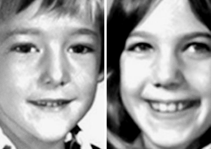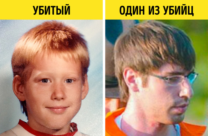 Перший знімок — світлина Джої Мартіна з альбому при випуску з середньої школи. Другий знімок — Олександр Панськи, один з винних, під час суду в 2012 році, через 14 років після скоєння вбивства.