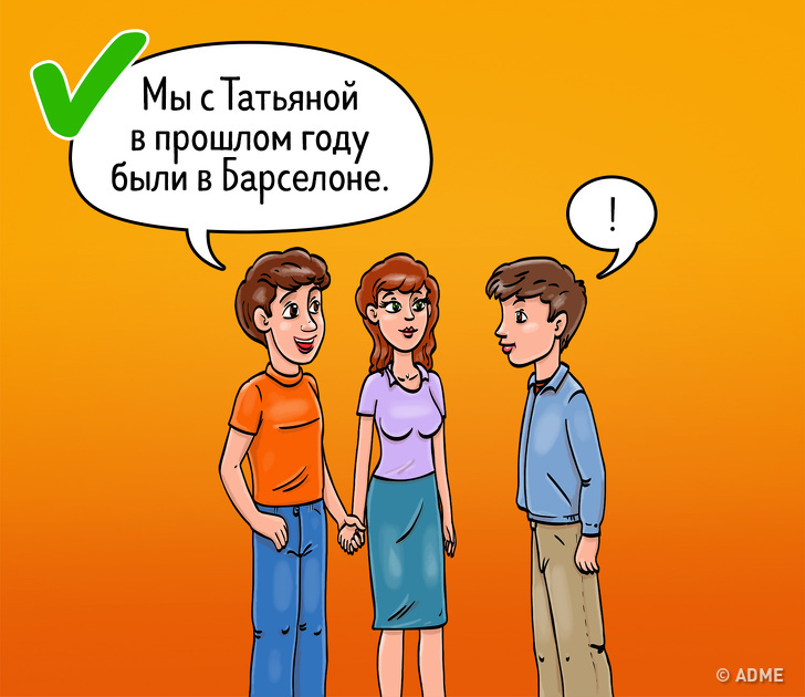 Якщо ви знайомитесь з новими людьми в компанії своїх супутників, не називайте їх займенниками в третій особі (він / вона) в їх присутності. Правильним буде називати своїх товаришів тільки по іменах. Цей нюанс оцінять знавці мистецтва вести бесіду, і ви обов'язково запомнитесь їм як експерт етикету. А друзям буде приємно в черговий раз почути свої імена.