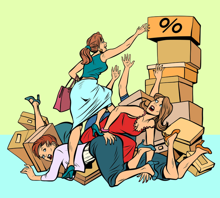 Участь у розпродажі дійсно робить людей трохи божевільними: кожен рік під час «чорної п'ятниці» світ облітають кадри битв за товари за зниженою ціною. За твердженнями вчених, низькі ціни на сезонних розпродажах впливають на ділянки мозку, що відповідають за отримання задоволення. Але коли конкуренти по шопінгу намагаються вирвати жаданий товар з рук в кров викидається велика доза кортизолу, гормону стресу, що змушує покупців втрачати людську подобу.