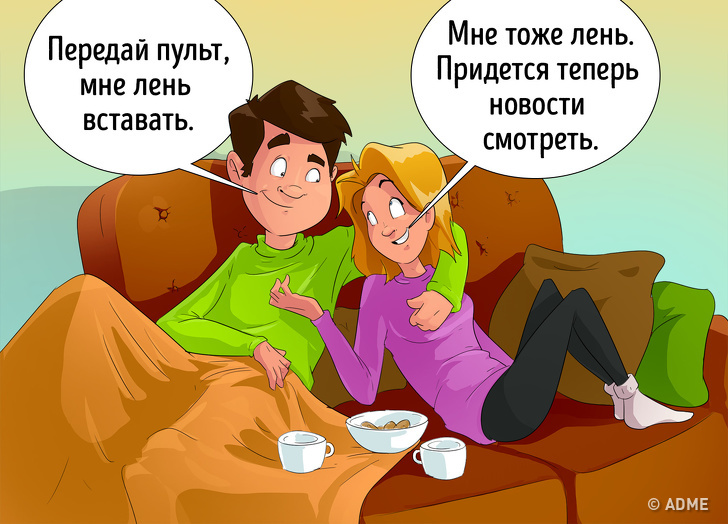 Нерідкі випадки, коли люди, які довго живуть у шлюбі, починають вести малорухливий спосіб життя. Шанси на те, що один з подружжя буде відвідувати фітнес-клуб або ще як-то займатися спортом, досить невисокі. Всупереч поширеному міфу про чоловіків, які лежать на дивані, жінки лінуються більше.