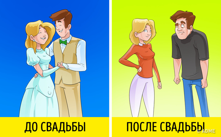 Наснага і позитивні відчуття, які молодята отримують після церемонії реєстрації шлюбу, зникають в середньому через рік. У всьому винні гормони: протягом року рівень гормонів радості поступово знижується, і подружжя починають виявляти темні сторони свого характеру.