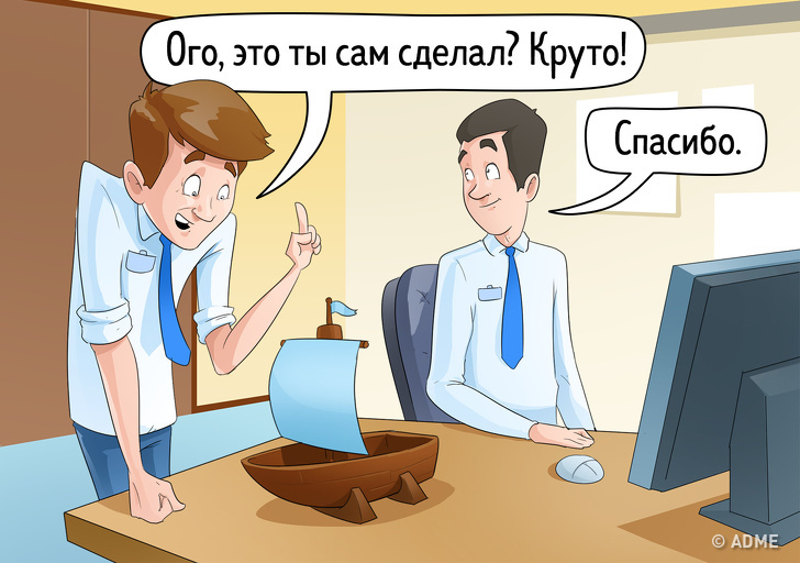 І краще уникати компліментів, які можуть бути розцінені як двозначні. Похвалити звіт колеги і сказати комплімент з приводу його шикарних очей — це не одне і те ж.
