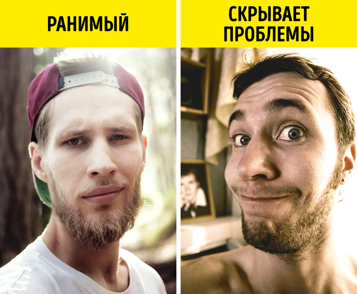 - Суворий вид (насуплені брови, стиснуті губи) — такі фото найчастіше викладають замкнуті, вразливі люди, вони можуть бути схильні до прояву агресії.