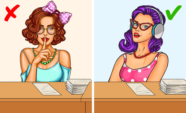 Спробуйте обговорити з колегами, яким сигналом можна показати, що людина зайнята. Не потрібно соромитися подати іншим знак про те, що їх не варто відволікати. Хорошою ідеєю буде залишити просте повідомлення у загальному чаті, щоб уникнути зайвих питань. Чим безрезультатно всіх просити дотримуватися тиші, краще мати навушники — це хороший умовний сигнал, що людина зайнятий роботою. Фахівці розробили спеціальні пристрої, що спалахують червоним світлом у випадку зайнятості співробітника.