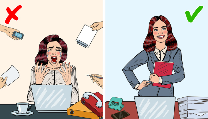 Корисно присвятити деякий час тому, щоб правильно організувати робочий стіл і в результаті зайвий раз не просити що-небудь у товаришів по службі. Визначте речі, якими ви часто користуйтеся, і зберігайте їх прямо на столі у швидкій доступності. Також зручно купити запасну зарядку для телефону і зберігати на роботі, щоб ні в кого не просити у разі необхідності. До того ж це підвищить вашу працездатність.