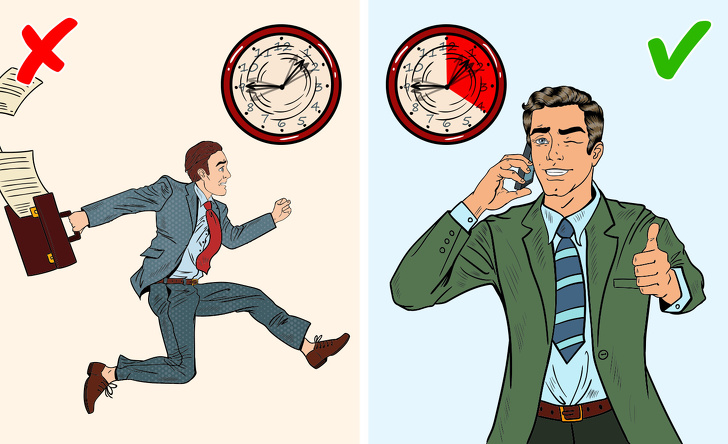 На роботу важливо приходити вчасно, однак завжди може статися незаплановане запізнення. Добре, якщо ви повідомите про те, що прийдете пізніше. На кожну хвилину запізнення слідують 2 хвилини попередження. Приміром, якщо ви думаєте, що запізнилися на 10 хвилин, повідомте за 20 хвилин, щоб ваші колеги або клієнти могли скорегувати свій розклад відповідним чином.
