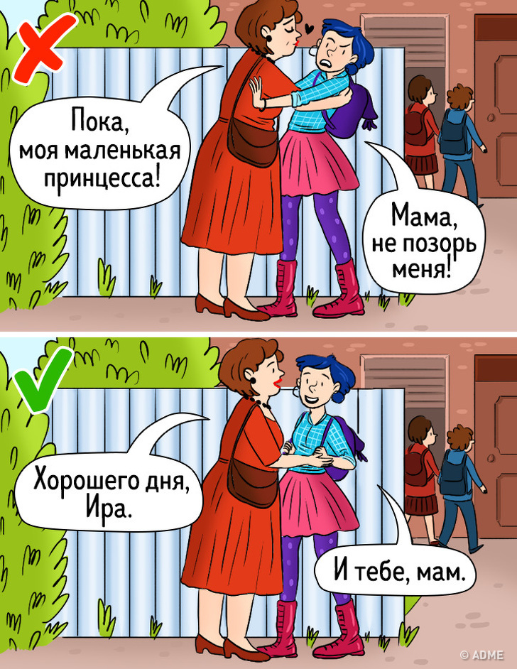 Можна допомогти дитині зберегти здатність до фізичного вираження емоцій. Для цього в перехідному віці слід так само виражати свою любов дотиками, але в менш ніжною формі. Поплескування по плечу, масаж ніг після тренування, недовгі обійми при зустрічі — відмінні варіанти. Через деякий час доросла дитина зможе повернутися до обіймів і поцілунків.