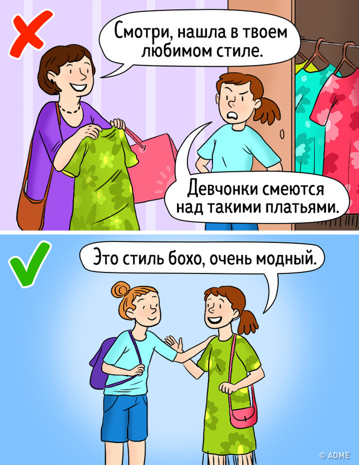 За пригніченими емоціями слідують захоплення, як у інших, не привертає увагу одяг, страх заперечити вчителю і боязнь безглуздо танцювати на дискотеці в літньому таборі. Для того щоб підлітковий конформізм не переріс у повну втрату себе, батькам слід завжди бути відкритими до будь-яких проявів настрою дитини і приймати його різним.