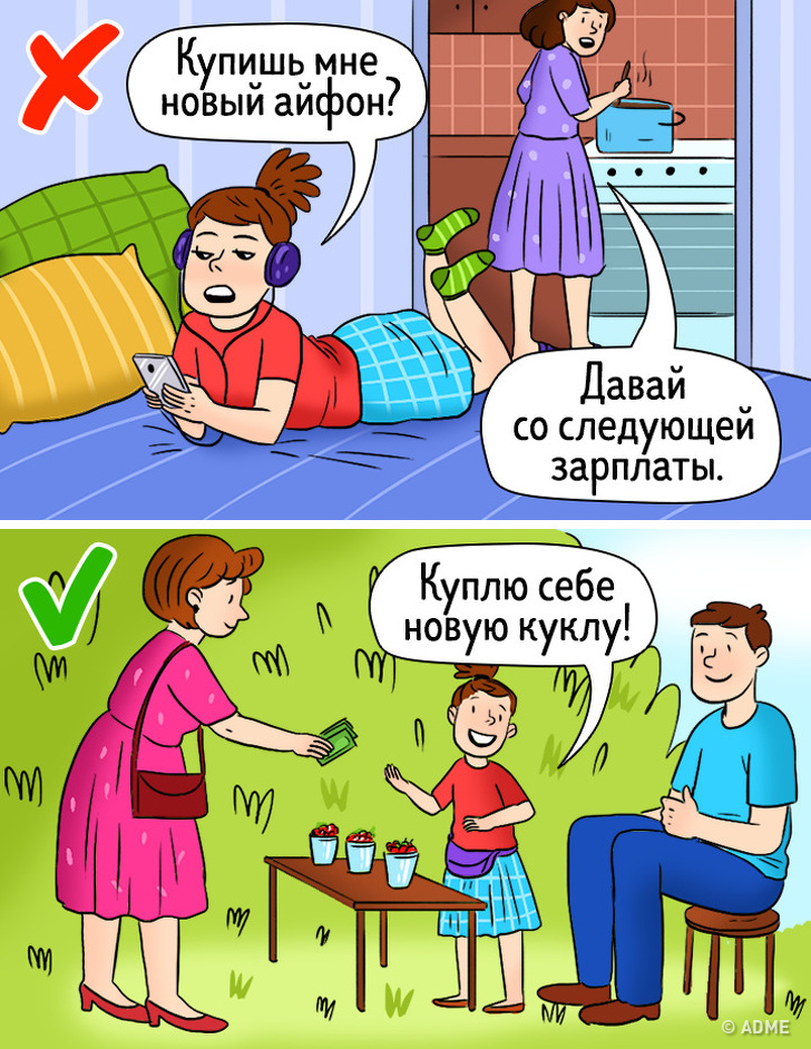 Якщо ви бажаєте дитині фінансового благополуччя, слід зробити 2 речі: дати йому основи фінансової грамотності і навчити працювати. Вже з 3 років можна розповідати дитині про те, що таке гроші, як вони з'являються в сім'ї і чому не можна купити все, що є в магазині. При належному вихованні до 7 років сформуються правильні установки, пов'язані з грошима.