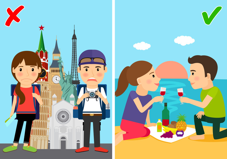 - Повільні мандрівки пропонують не перебігати від однієї пам'ятки до іншої, а неспішно насолоджуватися новими місцями і культурою, спілкуватися з жителями, пробувати місцеву кухню.