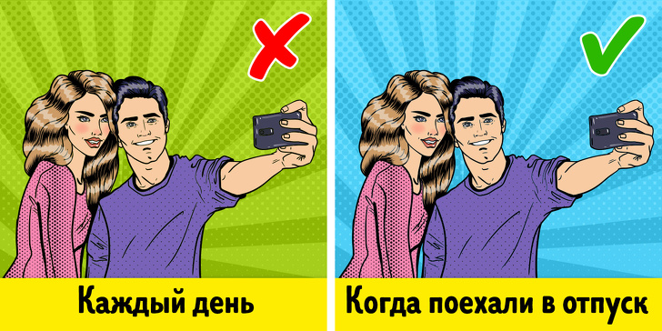 Психологи помітили, що деякі пари надмірно захоплені селфи, тому що черпають емоції з відгуку — лайків та коментарів, замість того щоб отримувати їх від партнера. Найчастіше вони вибирають підтримувати ілюзію ідеальних відносин, а не вирішувати реальні проблеми.