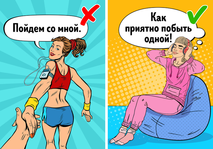Пари часто розпадаються з-за банальної нестачі усамітнення і викликаного цим стресу. Досвідчені люди знають, що бути завжди разом — не запорука міцного союзу, а, швидше, загроза для нього. Якими б щирими не були відносини, партнери повинні мати місце і час, щоб побути наодинці зі своїми думками і скинути соціальні маски.
