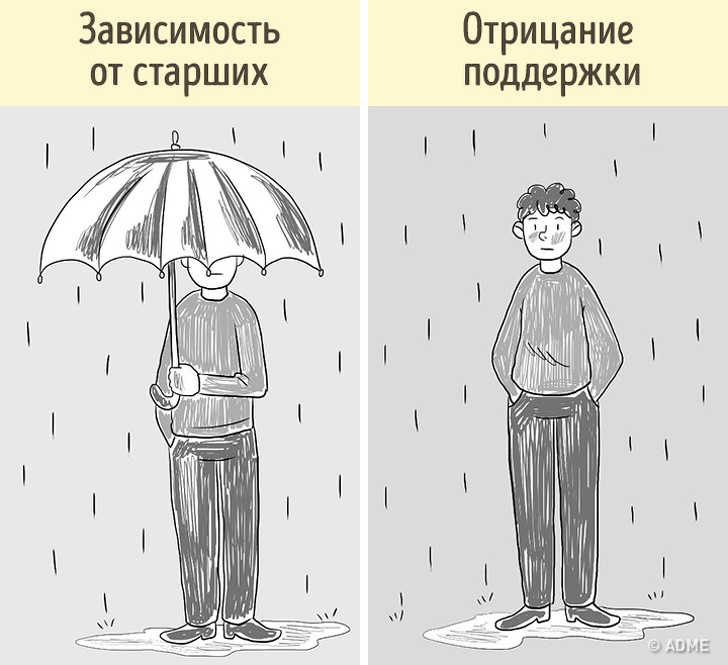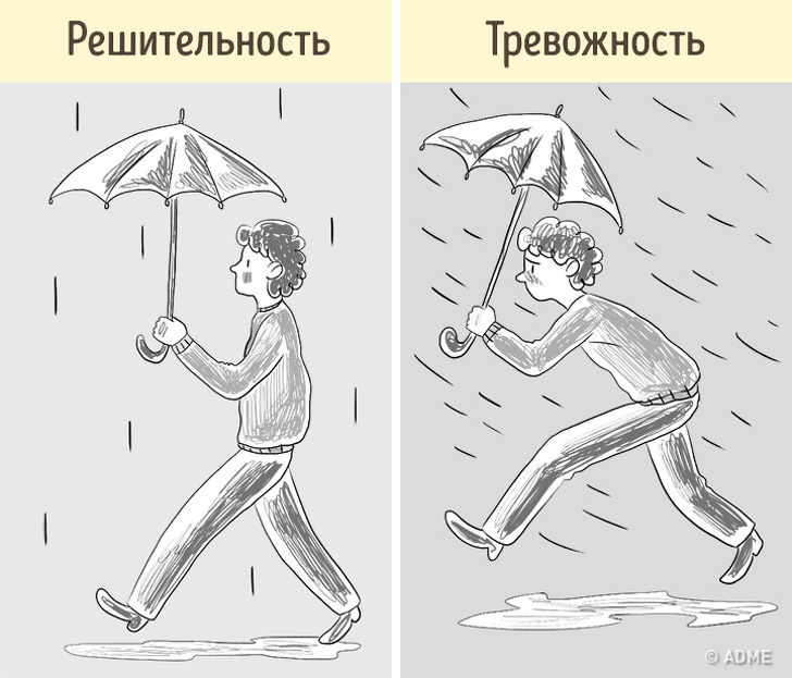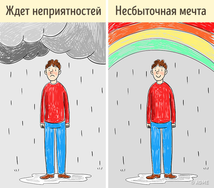 Дощ символізує некомфортну, неприємну середу. Для початку оціните загальний настрій свого малюнка в цілому і персонажа зокрема — як він реагує на дощ. Це і є ваша реакція на неприємні ситуації.