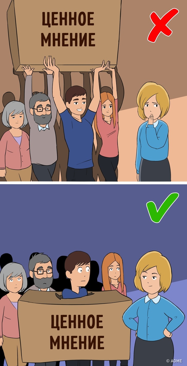 Дотримуючись порад психологів, витягніть із засіків душі свої бажання, змахніть з них пил і поставте на передній план. А що робити з «цінним» думкою оточуючих? Графічна дана інструкція трохи вище.