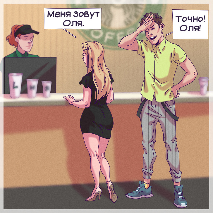 9. Якщо ви забули, як звати дівчину, то відведіть її в кав'ярню, в якій запитують ім'я при замовленні