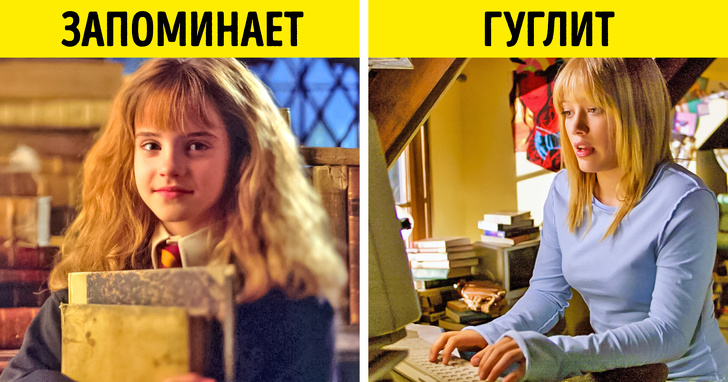 Учені з Колумбійського університету виявили, що люди краще запам'ятовують джерело інформації (папки, диски, сайти), ніж саму цю інформацію. Вони провели експеримент, в ході якого студентам доручили надрукувати кілька простих фактів (наприклад, що мозок страуса менше, ніж його очей), але половині учасників як би між іншим сказали, що їх файли після роботи не будуть збережені. Другій групі про це нічого не повідомили, тому піддослідні були впевнені, що зможуть знову перечитати файл.