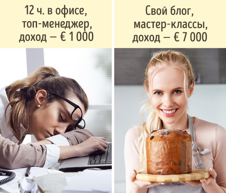 - Працює сьогодні. Кількість грошей не залежить від того, як багато і важко ви працюєте. Сьогодні великі суми грошей заробляються завдяки принципом «працюй з пристрастю». Треба знайти те, що вам дійсно подобається, визначити фактори успіху вашої справи і отримувати моральне задоволення, так і хороший фінансовий дохід.