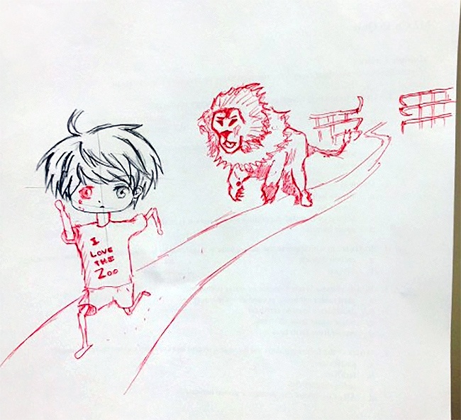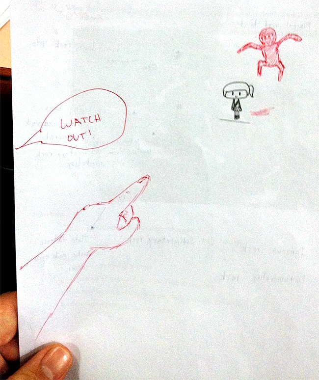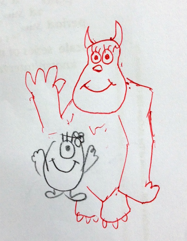 Джон Задрожный (John Zadrozny) зумів зацікавити всіх незвичайним для педагога підходом. Він звернув увагу на те, що його учениці малюють прямо на аркушах із завданнями, і вирішив ввести «правило червоної ручки». «Якщо ви будете малювати, я буду додавати до ваших малюнках щось своє», — повідомив Джон дівчаткам. З тих пір будь-які риски, закарлючки і начерки він перетворював у забавные ілюстрації. При цьому спочатку учениці виконували завдання, а вже потім займалися творчістю.