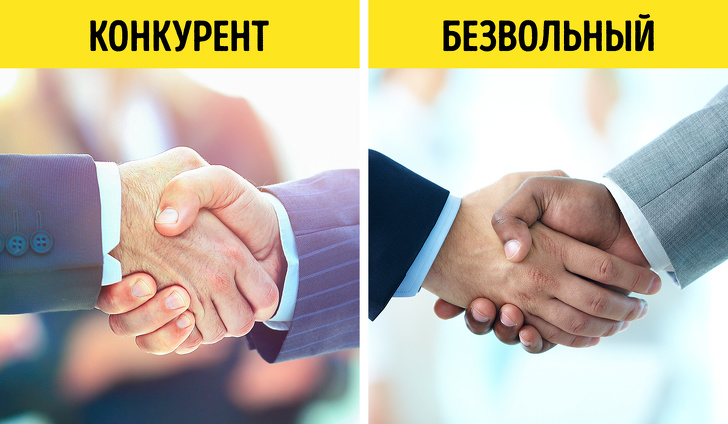 Дуже міцне, ніби зажимающее долоню в лещата, сприймається як ознака агресії, бажання домінувати і натяк на те, що ви небезпечний конкурент. Занадто слабке, мляве рукостискання послужить сигналом про незацікавленість в спілкуванні, а також про безвілля. Дуже швидке рукостискання, коли людина ніби чимшвидше хоче отдернуть руку, видасть такі риси, як нервозність і невпевненість в собі. Якщо хочете показати свою особливу прихильність і довіру, потисніть руку співрозмовника обома руками. Він запам'ятає вас як приємного і чесної людини.