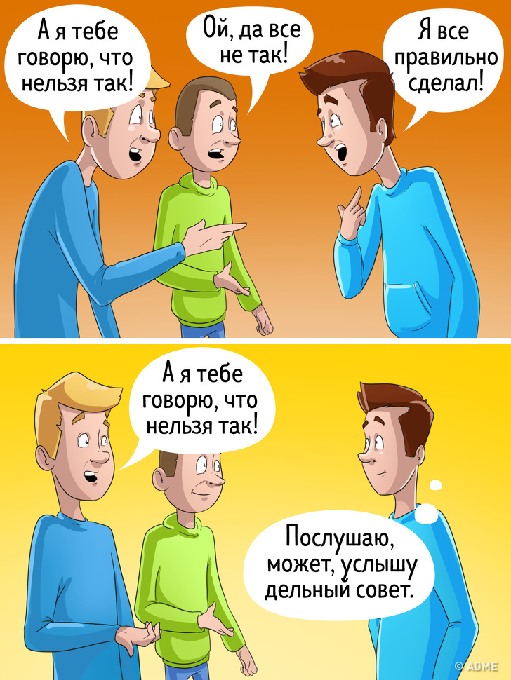Інтроверти самі по собі дуже гарні слухачі. Але ніщо людське їм не чуже. І коли мирний діалог перетікає в русло сварки чи суперечки, вони відновлюються після цього набагато складніше. Щоб уникнути такої ситуації, варто просто вислухати співрозмовника. Така тактика може послужити вам хорошу службу як у професійному плані, так і в особистому.