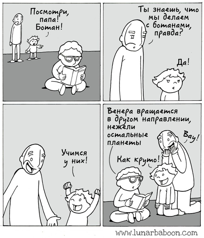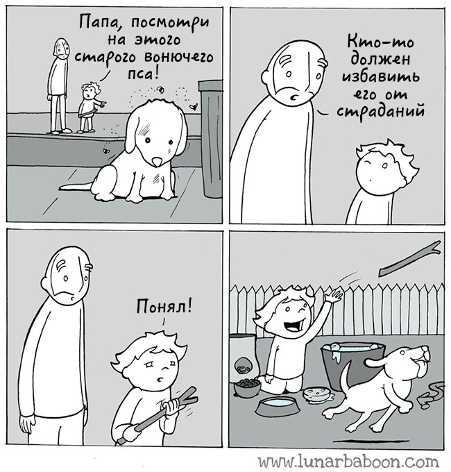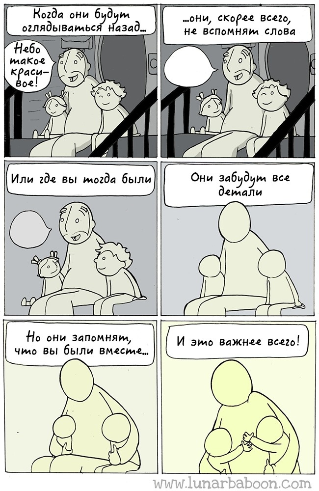 Талановитий художник Lunarbaboon живе в Торонто разом з дружиною і двома дітьми. Він працює вчителем і у вільний час малює мудрі комікси про сім'ю. Сам Lunarbaboon описує себе досить іронічно: «наполовину людина і наполовину місячна мавпа, намагається зрозуміти весь цей світ». Здається, розуміння устрою Всесвіту художник досяг успіхів, тому що його комікси змушують замислитися сотні тисяч шанувальників.