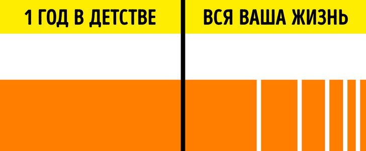 В дитинстві кожен день приносить нам масу нових вражень, ми вчимося і постійно бачимо щось вперше. З віком таких моментів стає все менше і менше, тому ми починаємо вимірювати хід подій необ'єктивно. Цю точку зору підтвердив нейробіолог Девід Иглман (David Eagleman), який проводив експерименти, демонструючи людям різні зображення.