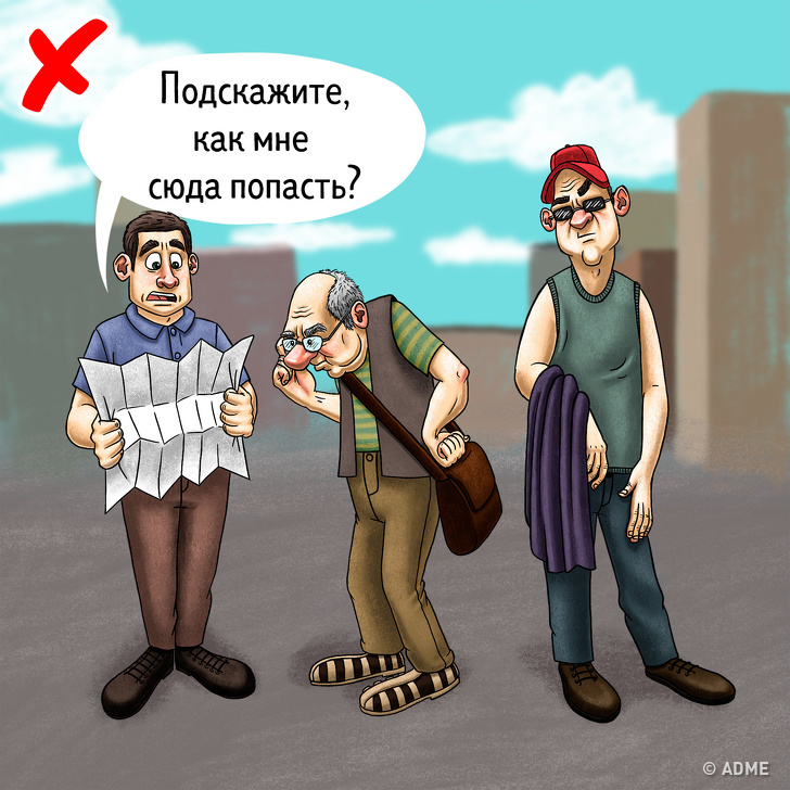 У місцях, де багато туристів, кишенькові злодії часто діють за схемою «заблукав турист». Дует злодюжок вздовж і поперек перетинає площу зі скупченням людей у пошуках жертви. Як правило, в їх поведінці і жестах є щось дивне: вказують відстань на карті, не дивлячись на неї, знову і знову повертаються туди, звідки тільки що прийшли, закривають руки кофтою або курткою.