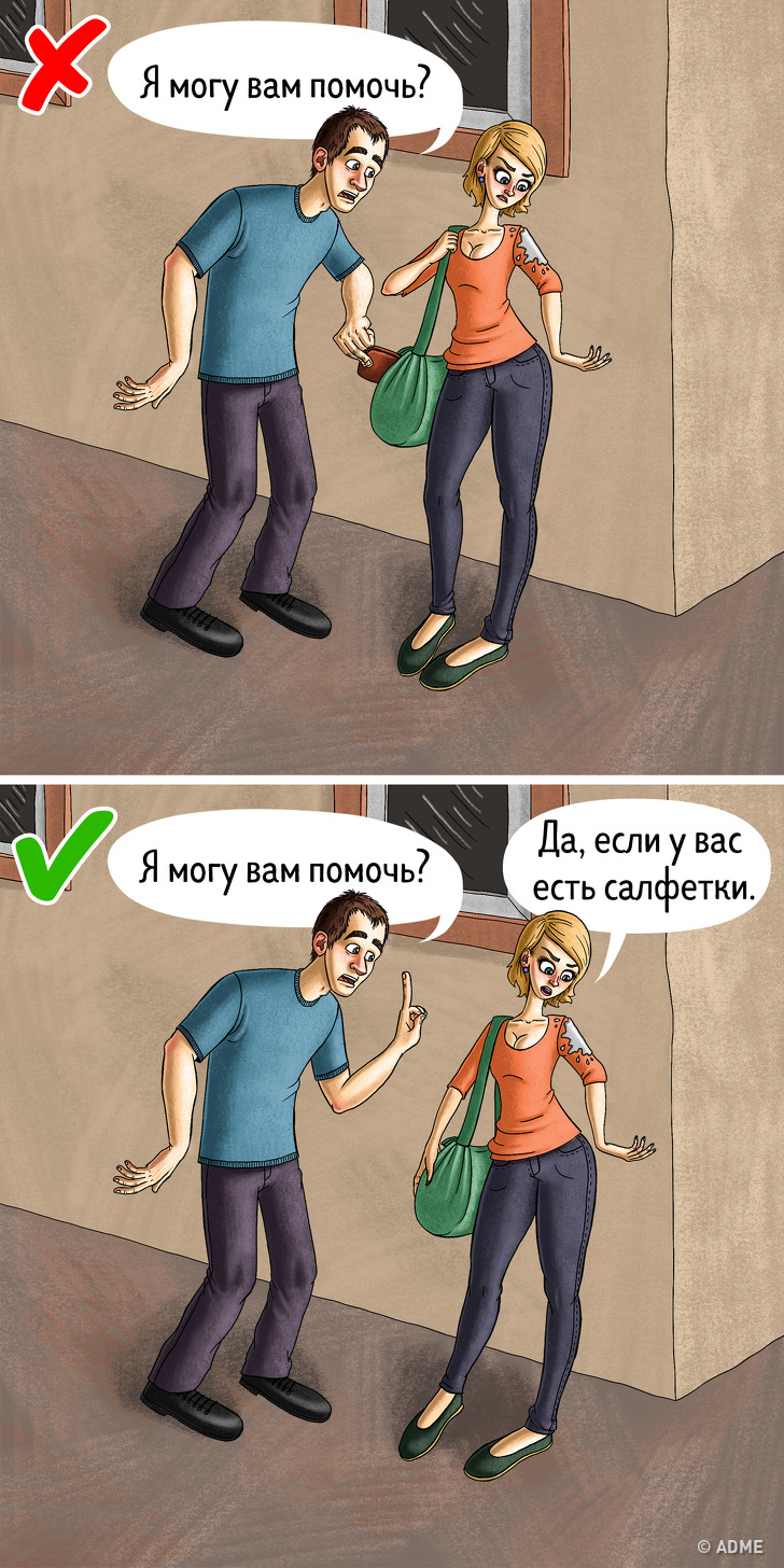 Звичайно, подібні ситуації потрібно реагувати, тому що це може виявитися не прийом, а по-справжньому небезпечний для чиємусь житті випадок. Але коли ви знаєте про подібні хитрощі, ви можете подбати про збереження своїх речей і надавати допомогу без страху стати жертвою злодюжок.
