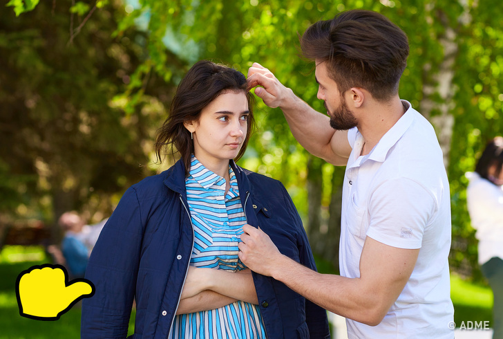 Зверніть увагу, як людина веде себе під час розмови. Помітили закриту позу у вигляді схрещених на грудях рук (або одна рука опущена, а інша тримає плече), побачили насуплені брови? Можливо, ваш співрозмовник просто замерз, але, швидше за все, йому не надто комфортно поруч з вами. Щось йде не так: або ви йому просто не подобаєтеся, або десь перегинаєте палицю.