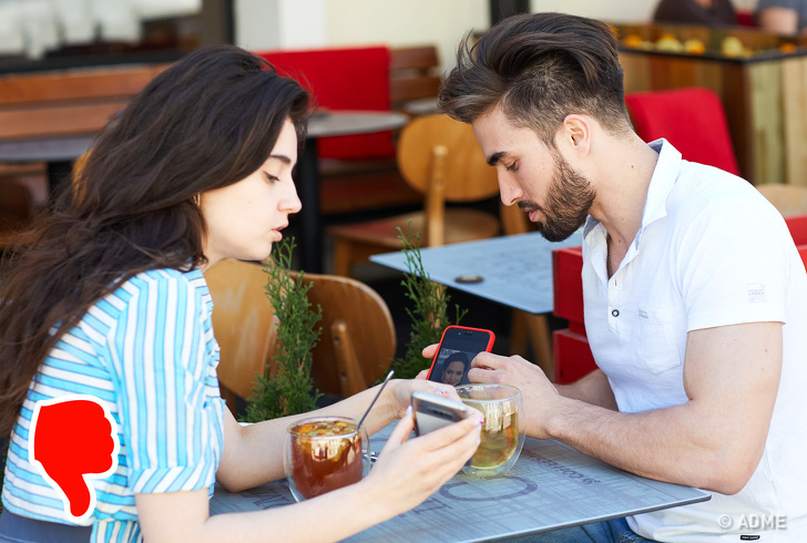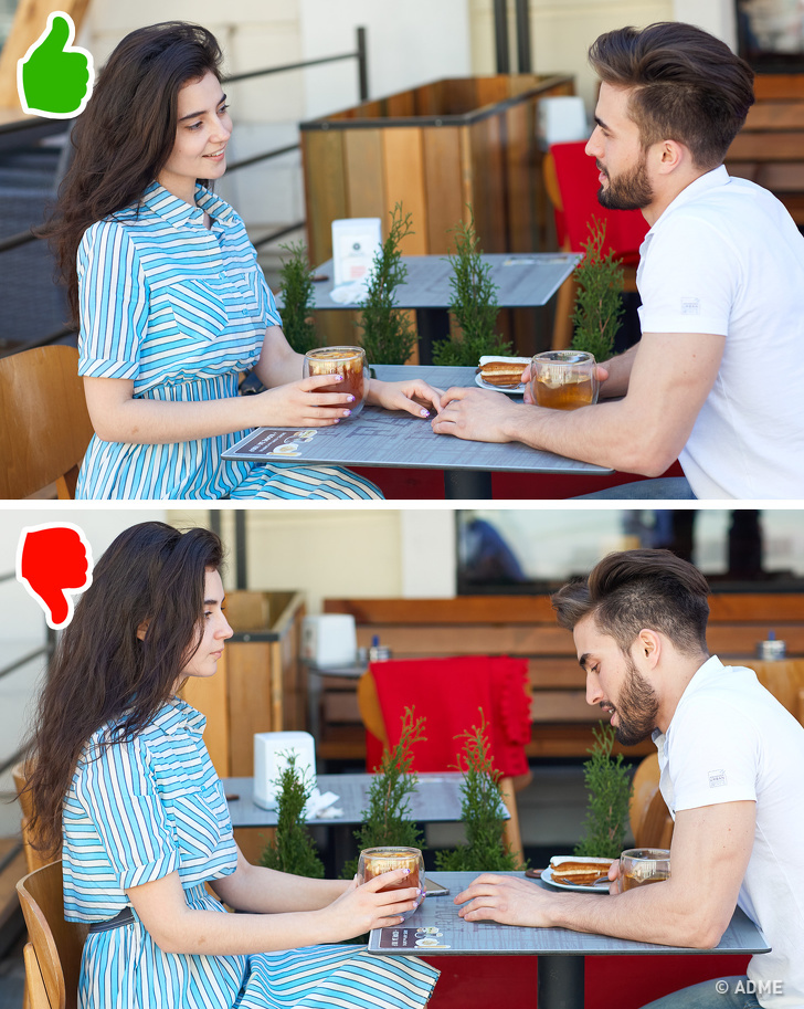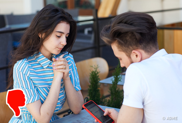 Ви Не встигли прийти в кафе, як ваш новий знайомий (чи знайома) дістає смартфон і занурюється у власні справи. Що б не говорили, але це елементарна неповага до співрозмовника. Також можливо, що чоловік цей, загалом-то, і непоганий (хоч і не дуже вихований), але він сам не віддає собі звіт в тому, що страждає залежністю від соціальних мереж. І зовсім сумний варіант: йому просто нецікаво спілкування з вами, і подібним — не найкрасивішим — чином він демонструє своє ставлення.