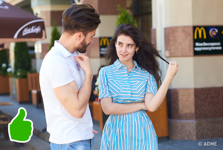 Вона мимоволі поправляє свою зачіску або накручує локони на палець, а він то і справа обтрушує невидимі порошинки зі своєї футболки? Ця парочка однозначно подобається один одному: такі «причепурювання» є одним з найбільш яскравих ознак симпатії. Людина намагається здатися краще і симпатичніше, і навряд чи він стане це робити перед тим, хто йому байдужний.