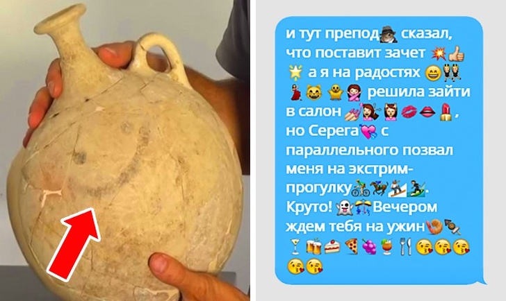 Смайлики — чудовий винахід. До речі, влітку 2017 року команда археологів виявила на розкопках в Італії найдавніший смайлик на глечику, виготовленому ще до нашої ери. У 1972 році Франклін Лауфрані придумав зображення смайлика, через 10 років Скотт Фалман запропонував використовувати двокрапку, дефіс і дужку, а в 1998 році японець Сигэтака Куріта створив перші емодзі. І понеслося.