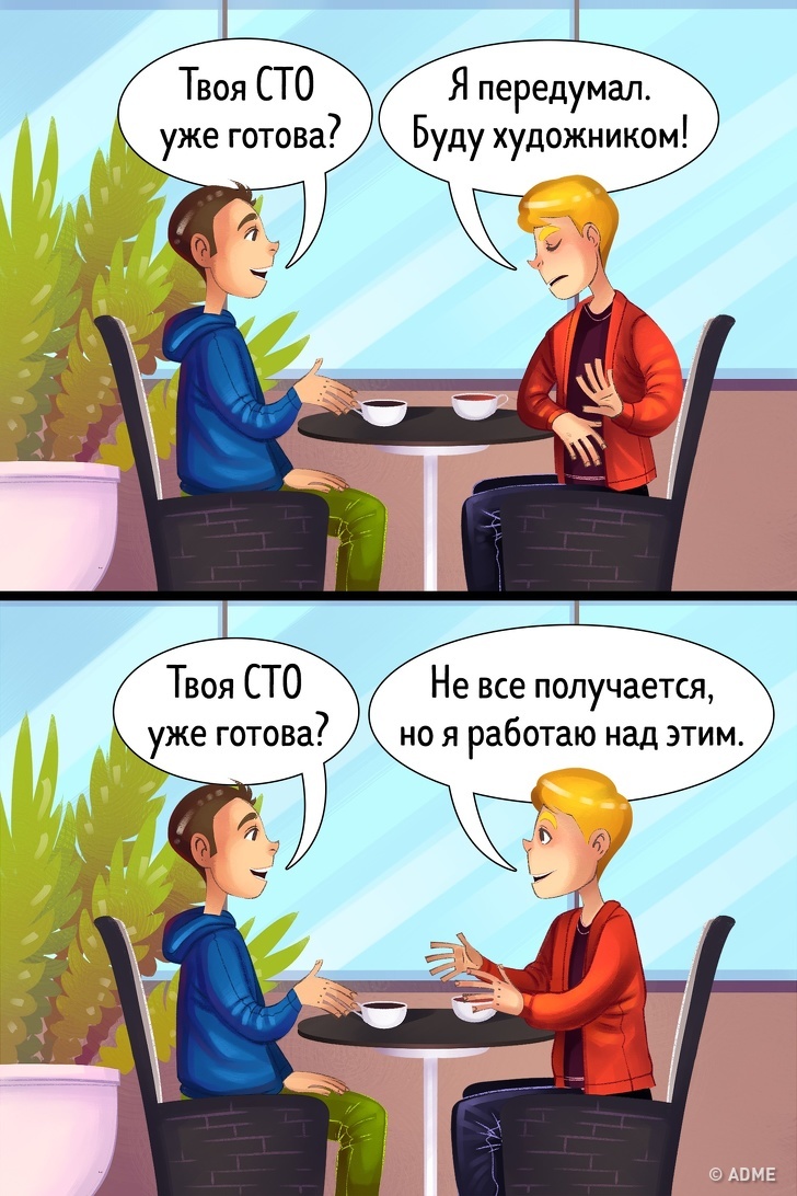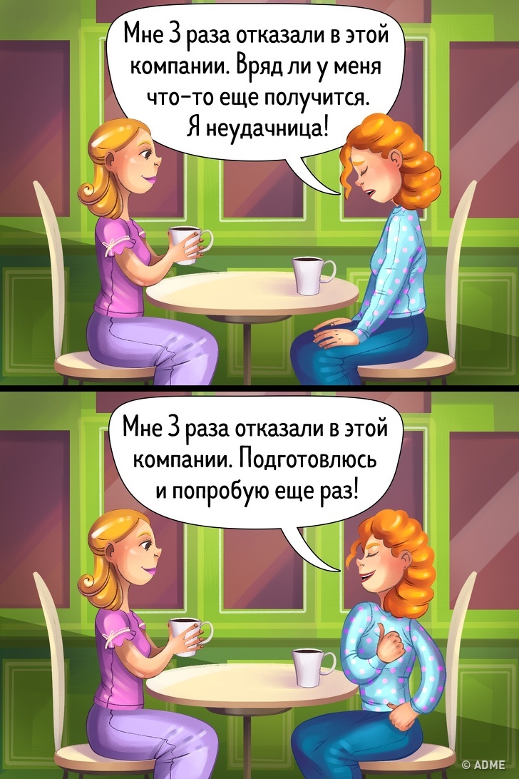 Самокопання призводить до того, що ви заглиблюєтеся все більше свою проблему і вона міцно вкорінюється у вашій свідомості, починаючи вас гнобити і занурювати в депресію. А це не сотий крок до успіху, це стільки ж кроків назад. Скажіть «так» здоровому самоаналізу і рефлексії. Саме вони допоможуть вийти з апатичного стану і реально оцінити свої можливості.