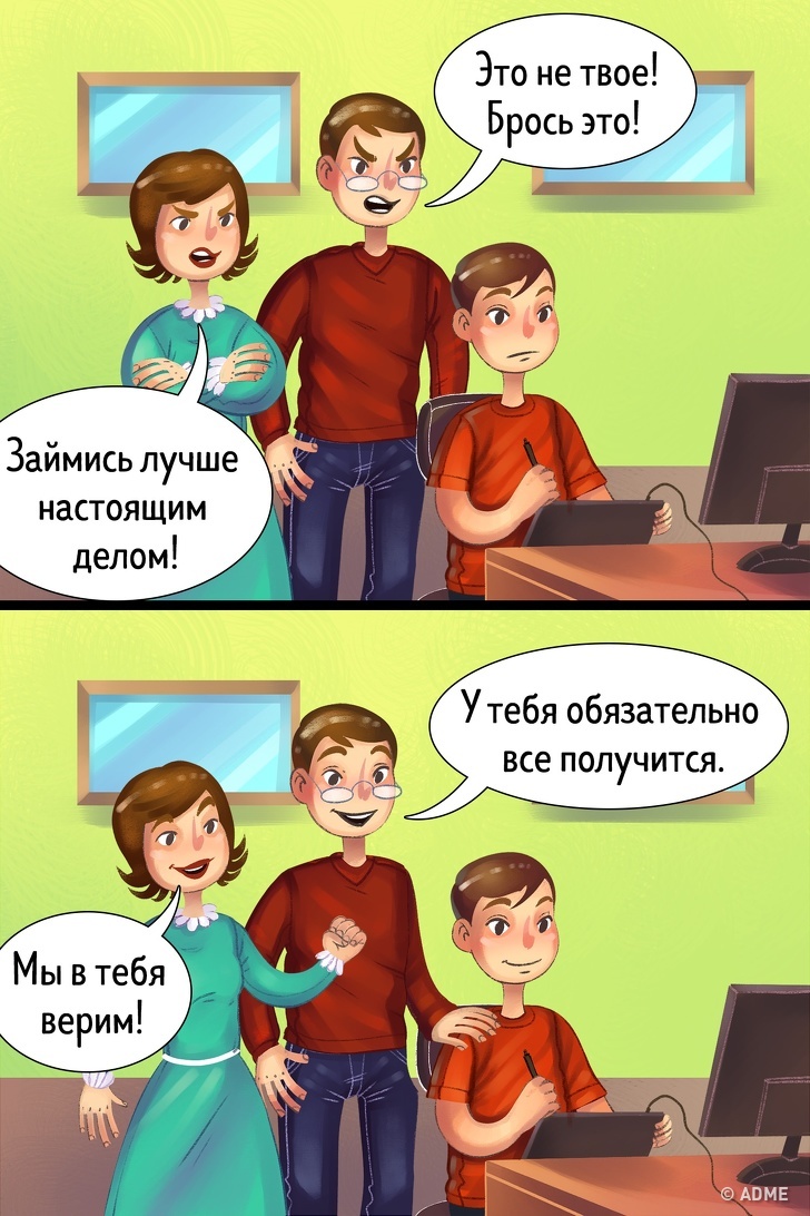 Одним із секретів успіху є підтримка близьких людей. Але іноді ми стикаємося з негативом і нерозумінням з їх боку і нам дуже складно продовжувати обраний шлях. Але не варто істерити і вступати в конфлікт. Досить спробувати спокійно сісти і пояснити, наскільки сильно ви любите своїх близьких, як вам важливо те, чим ви займаєтеся, який результат хочете отримати і, звичайно, як цінно отримати від них підтримку.