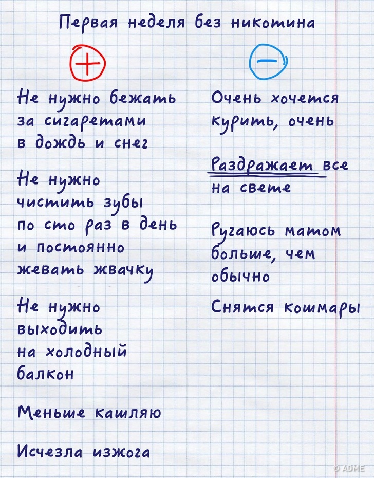 Щоб мотивувати себе, я склала «+» і «-» безникотиновой дієти на той момент.