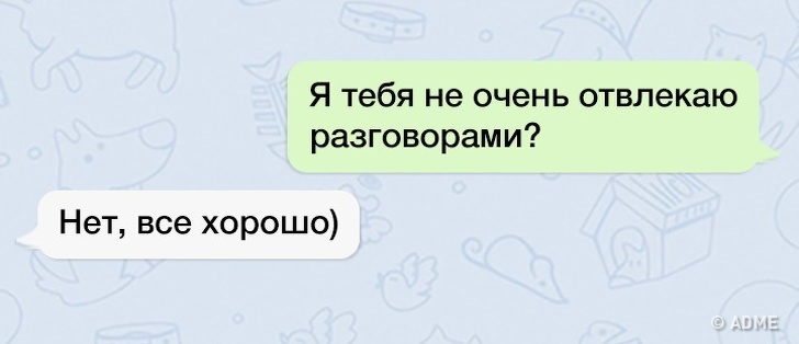 Зворотна ситуація: вам не пишуть, а лише відповідають, ініціативи до продовження розмови не проявляють. Не потрібно будувати ілюзій з приводу «зайнятості» людини. Той, хто хоче, завжди знайде час.